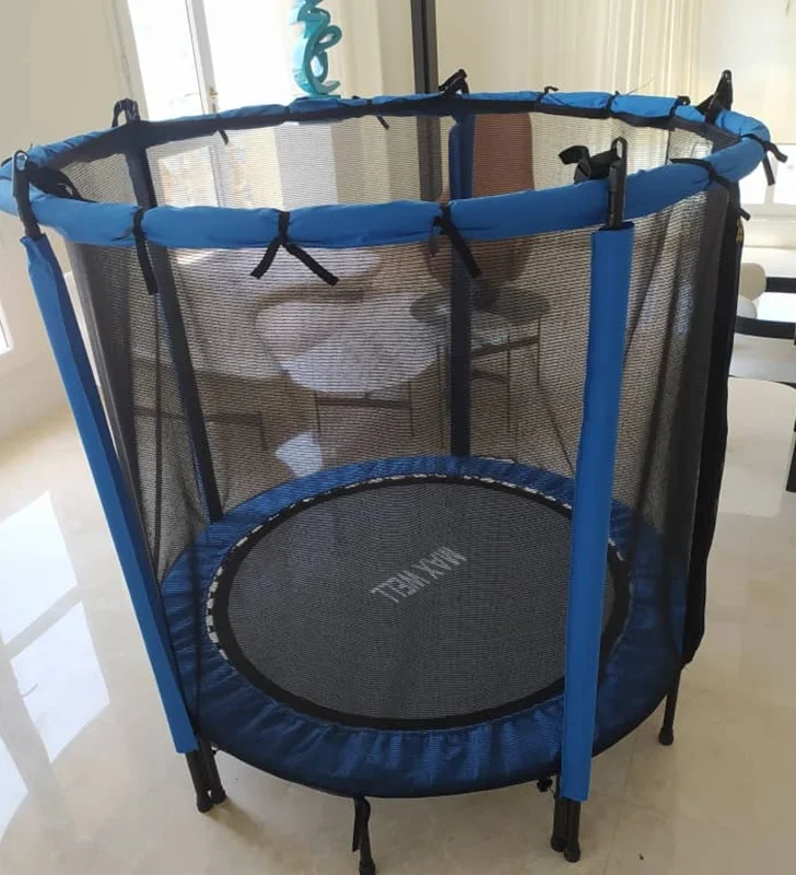 ترامپولین جدید حفاظ دار مکسول یک ترامپولین زیباست که به تازگی نمایندگی بادی استور آن را موجود کرده است تا بتوانید برای تفریحات و ورزش های خود از آن استفاده کنید . ترامپولین جدید حفاظ دار مکسول کیفیتی بسیار عالی دارد برای اینکه پایه های آن از فولاد گالوانیزه ساخته شده است و برای همین کاملا ضد آب می باشد و در زمان هایی که از آن در خارج از خانه یعنی در فضاهای باز استفاده کنید ، صدمه ای را نخواهد دید . پایه های ترامپولین دارای ضربه گیر بوده و می تواند از ساییدگی آن جلوگیری کند . کف ترامپولین از پلی پرو پیلن ساخته شده است و انعطاف بسیار خوبی را داشته و می تواند در برابر ضربه هایی که به آن وارد می شود مقاوم باشد . این کف به وسیله فنر های ضد زنگ بسیار محکمی به فریم و پایه های ترامپولین وصل شده است . شما می توانید با استفاده از ترامپولین جدید حفاظ دار اینتکس ، ارتفاع زیادی را بپرید . برای همین است که یک محافظ بلندی برای ترامپولین در نظر گرفته شده است . ابعاد ترامپولین جدید حفاظ دار مکسول برابر با ( قطر : 240 سانتی متر ، ارتفاع : 280 سانتی متر ) می باشد . وزن محصول همچنین 49 کیلوگرم است و با توجه به تحمل وزن بالایی که دارد می تواند توسط تمامی رده های سنی مورد استفاده قرار بگیرد .